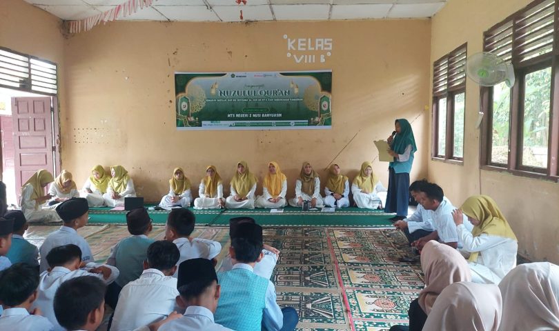 Madrasah Tsanawiyah Negeri (MTsN) 2 Musi Banyuasin menggelar kegiatan Peringatan Nuzulul Qur’an. Kegiatan ini dihadiri oleh seluruh Pendidik dan Tenaga Kependidikan (PTK) serta diikuti oleh seluruh siswa MTsN 2 Musi Banyuasin.